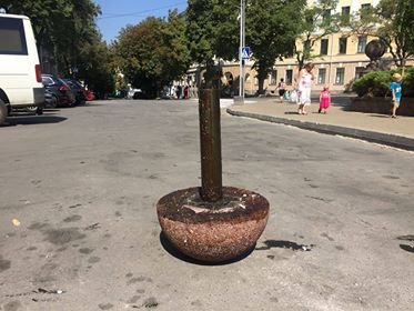 Позаминулого року дісталося й одному з бетонних півкуль, який розмістили на під’їздах до Театрального майдану. На вулиці Грушевського демонтований обмежувач лежав на дорозі, тож майдан став на певний час відкритим як для проїзду, так і для паркування.