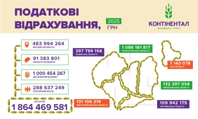 Розмір податкових відрахувань Компанії до бюджетів усіх рівнів продовжив зростати і минулоріч сягнув 1,86 млрд грн — на 239 млн грн більше, ніж у 2024 році. Водночас «Контінентал» надалі системно підтримує громади, на території яких веде свою діяльність: на втілення соціальних проєктів у п’яти західних областях України протягом 2025 року було спрямовано 50,97 млн грн.