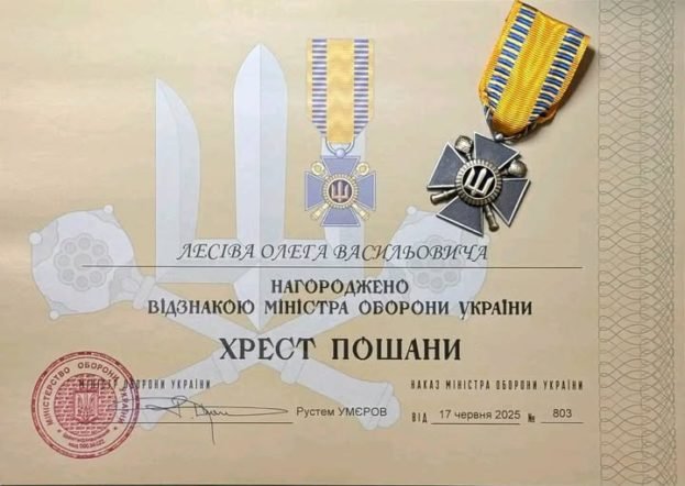 Міністр оборони України Рустем Умєров нагородив військового з Тернопільщини Олега Васильовича Лесіва “Хрестом пошани”.