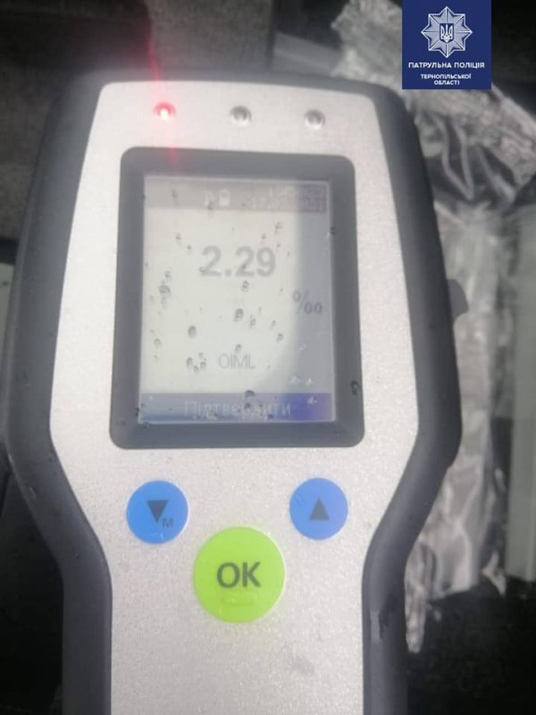 Результат огляду виявився позитивним, прилад зафіксував 2.29 проміле алкоголю в крові громадянина, що суттєво перевищує допустиму законом межу. Патрульні склали на водія протоколи за ч. 1 ст. 130 (Керування транспортним засобом в стані сп’яніння) КУпАП, за ст. 124 (Порушення правил дорожнього руху, що спричинило ДТП)КУпАП та відсторонили чоловіка від керування автомобілем.