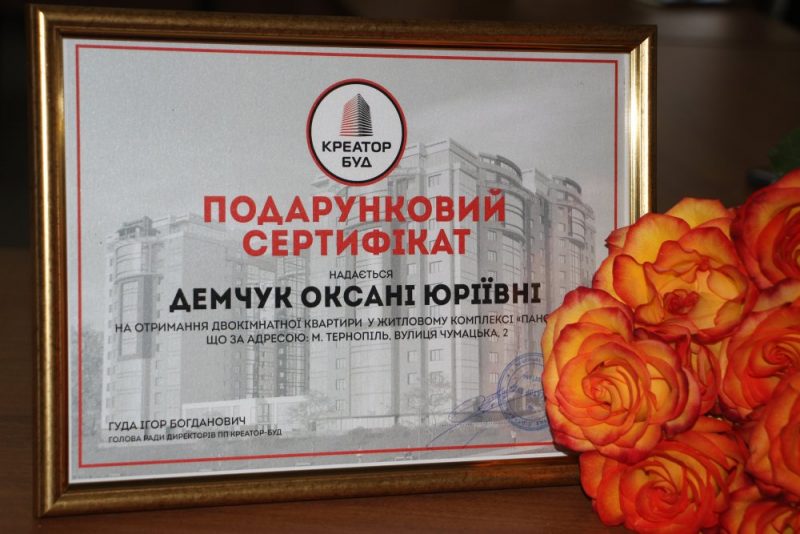 На зустрічі з сім’єю отця Володимира, яка відбулась в приміщенні єпархії УГКЦ, Ігор Гуда подарував вдові Оксані Демчук сертифікат на квартиру у житловому комплексі Панорама, будівництво якого компанія «Креатор-Буд» завершує на вулиці Чумацькій у Тернополі.