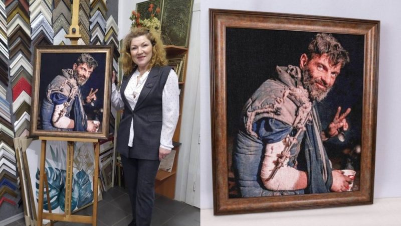 Заслужена майстриня народної творчості України з Житомирської області Тетяна Пащенко вишила портрет захисника Маріуполя Михайла Діанова з Тернополя. Розмір картини 53 на 63 сантиметри. Вишивала майстриня портрет п’ять місяців. Про це жінка розповіла Суспільному.