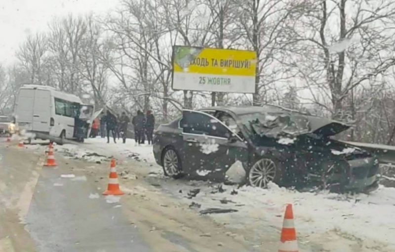 За даними свідків події, зіткнулися легковий автомобіль “БМВ” та пасажирський мікроавтобус “Мерседес спринтер”.