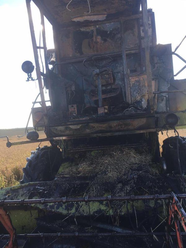 Вогнем знищено кабіну комбайна, пошкоджено моторний відсік та жатку. Причина виникнення пожежі та матеріальні збитки встановлюються. Пожежу ліквідовано черговим караулом 16-ї державної пожежно-рятувальної частини 5-го державного пожежно-рятувального загону Головного управління.