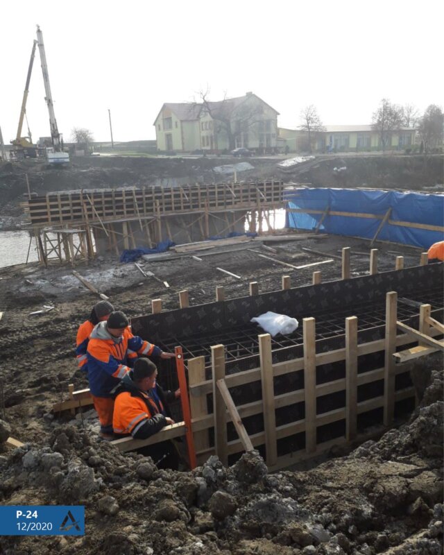 Сьогодні мостобудівники встановлюють каркас ригеля берегової опори №2.