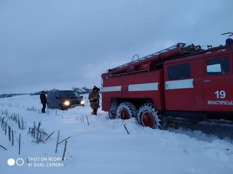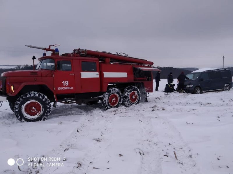 Проїзду через село, внаслідок погодніх умов, не було. Рятувальники прибули з Монастириська, через поле відбуксирували легковий автомобіль до траси, а звідти батьки із малюками безперешкодно дісталися до лікарні в Івано-Франківськ.