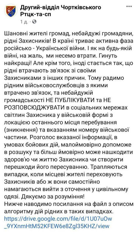 Інформацію про це розмістив на сторінці у Фейсбуці Другий-відділ Чортківського Ртцк-та-сп.