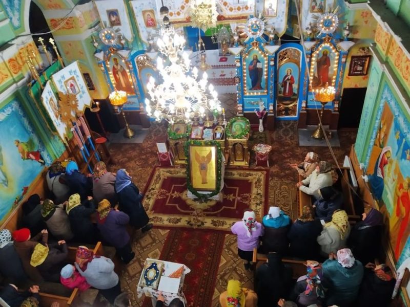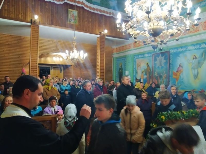 “ввечері біля мироточивих ікон, служився Акафист Михаїлу Афонському, побувало дуже багато паломників з сусідніх сіл, також співслужив отцю – настоятелю Священник з села Шупарка Борщівського району, після акафисту відбувалося помазування вірян освяченим єлеєм.