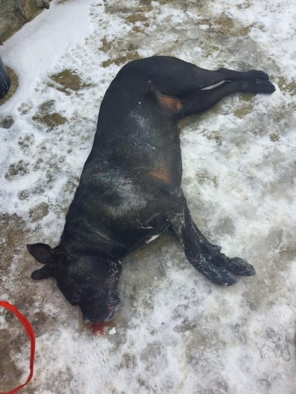 Собака билась в судорогаг і скавуліла від болю. Дальше що з ним робилось я описувати не буду. Але за годину часу о 00.20 собаки не стало.Ми відвезли його на експертизу щоб знати чим саме його втруїли. Вертаючись з лабораторії, ми побачили знову шмат м’яса на подвір’ї за великим забором.