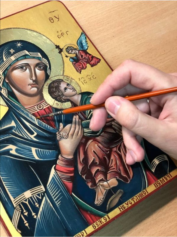 Олена каже, що минулорічний карантин добряче їй допоміг. Адже попередньо вона займалась з викладачем лише двічі на тиждень, тож образ писала місяцями. А ось будучи вдома, працюючи з ранку до вечора, змогла створити ікону вже за кілька тижнів. Майстриня здебільшого працює у візантійському стилі, каже, відчуває у таких іконах більше духовності. Чимало може розповісти про те, які кольори слід використовувати, а які категорично заборонено.
