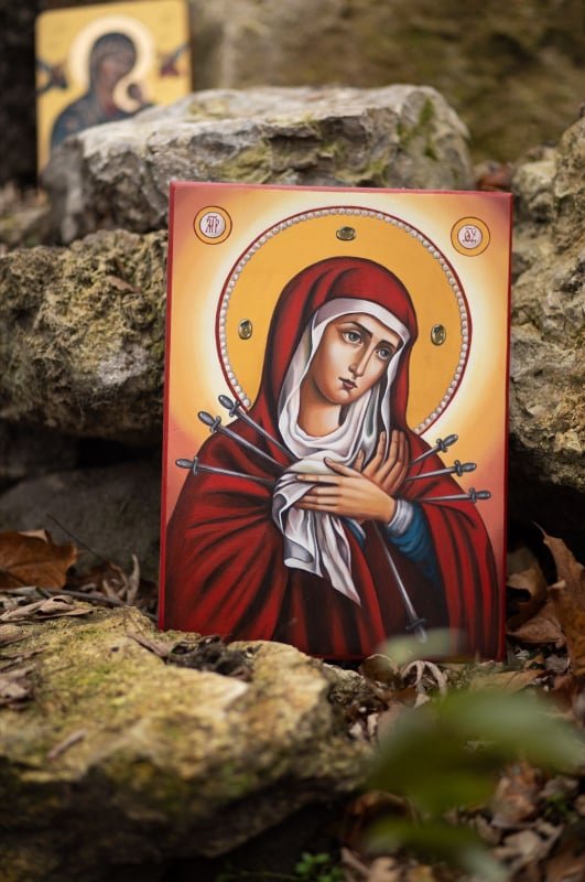 Як з’ясувала згодом Олена, свята, зображена на образку, була великою поборницею ікон. Коли молитви перед іконами вважали ідолопоклонством, вона виборола право, щоб ікони були в пошані. До слова, цей образочок висить в майстерні Олени, як символ того, що жінка знайшла себе.