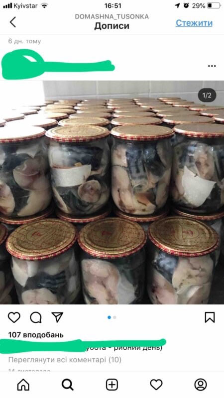 При проведенні моніторингу інтернет ресурсів та соціальних мереж, спеціалісти Головного управління Держпродспоживслужби в Тернопільській області виявили факт пропонування до реалізації рибних та м’ясних консервів домашнього виготовлення, потужністю, яка не отримала державної реєстрації (експлуатаційного дозволу) та не перебуває під державним ветеринарно-санітарним наглядом та контролем.