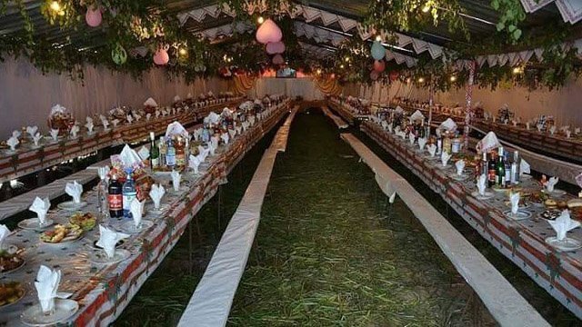 “О, то була весела процесія та підготовка до весілля, – почала розповідь пані Надія. В господі мали свині, бо як кричало поросятко, то вже всі знали в селі, що процес підготовки до весілля йде повним ходом. Вудили шинки, ковбаси, випікали заяці. То тепер, то хлібець м’ясний, а в нас то заяці, – усміхається пенсіонерка. Сусіди помагали – хтось курку приніс, хтось індика, а хтось яйці. Ну і, звичайно, гнали самогонку. В трилітрові бутлики капала оковита, все було натурпродукт. А ще, чоловіки бігали, шукали шалаш. То такий величезний довгий намет. Лавки для гостей, щоб мали на що сісти, капи, аби завішати боки у наметі. Позичали не за гроші, за могорич. Люди були простіші”, – розповідає пані Надія.