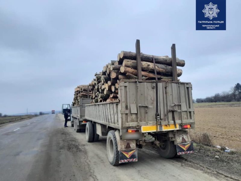 Тернопільські патрульні зупиняють вантажівки, які перевозять деревину