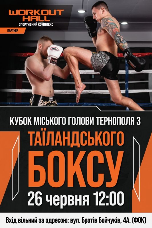 26 червня у Тернополі відбудеться Кубок міського голови Сергія Надала з таїландського боксу. Відкритий чемпіонат організовують представники обласної федерації тайського боксу та спортивного комплексу “WorkoutHall”, спільно з міським головою.