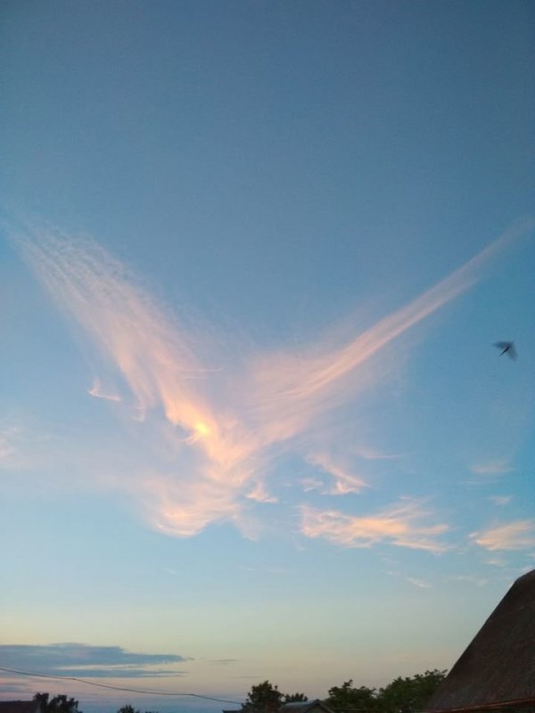 Незвичне явище помітили у небі над Кременеччиною. Як інформує “Терен“, там з’явилася тендітна фігура з хмарин схожа формою на ангела.