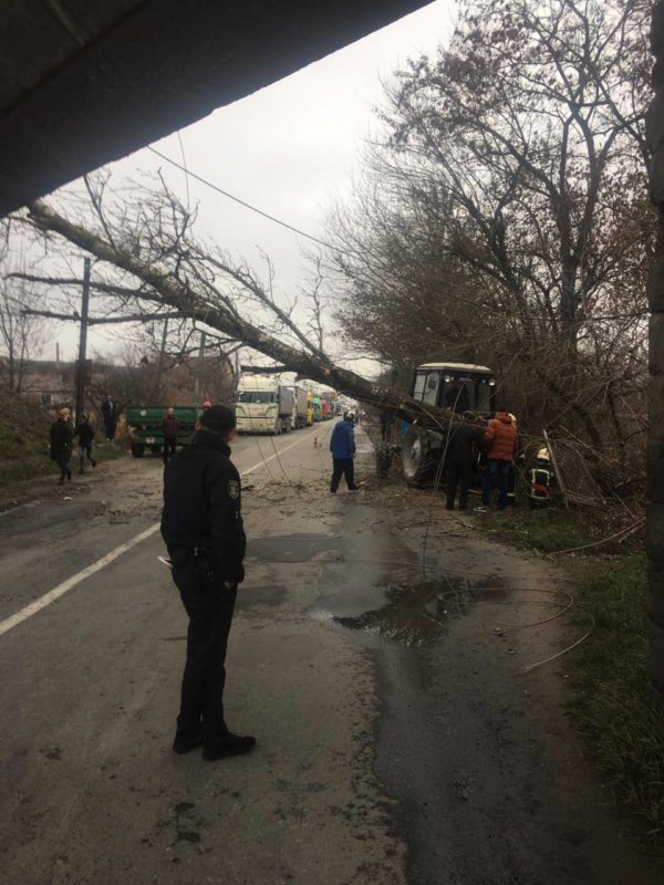 У Теребовлі дерево паралізувало рух головною вулицею та на колії
