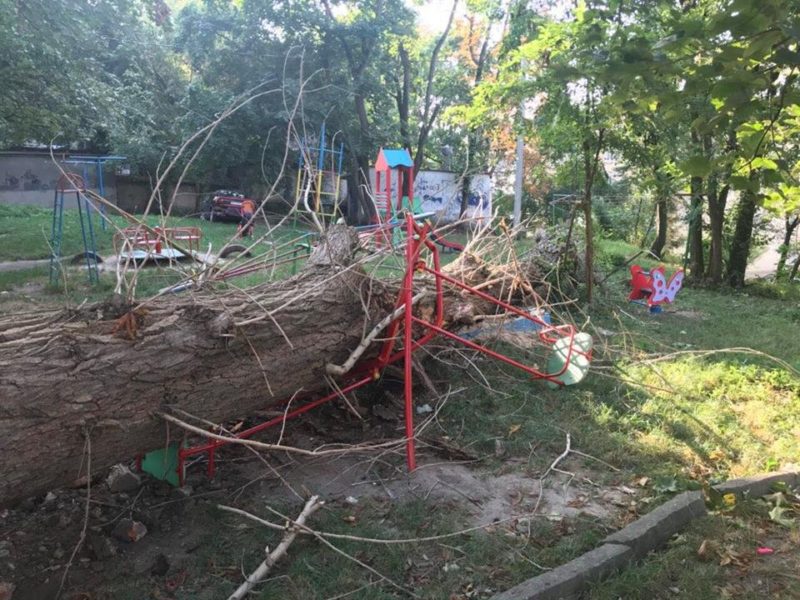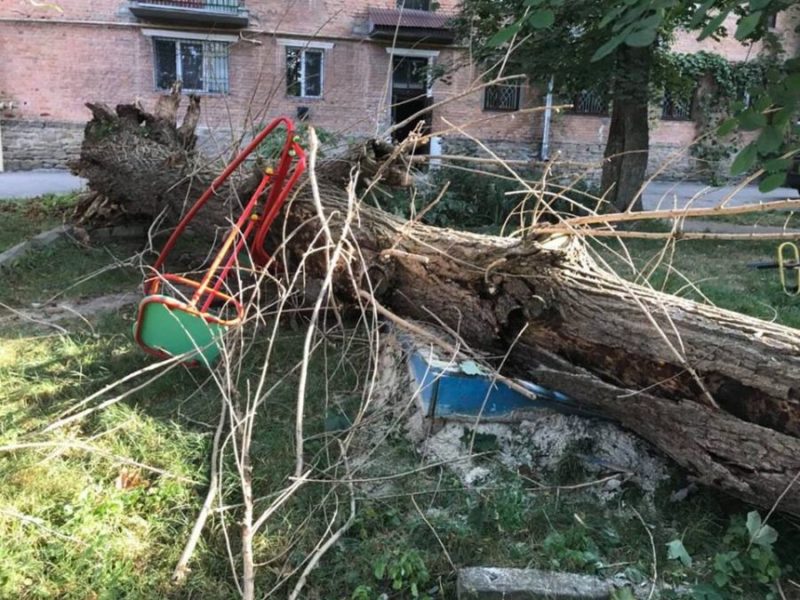У Тернополі величезне дерево розтрощило дитячий майданчик (Фото)