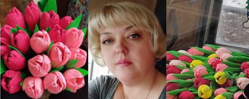 Водійка 10 тролейбуса Оксана Перняк вітає тернополянок зі святом 8 березня. Вона дарує дівчатам тюльпанові цукерки.