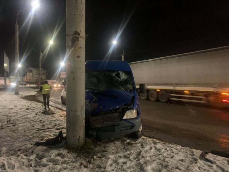 За попередньою інформацією, водій мікроавтобуса не впорався з керуванням та врізався у стовп.