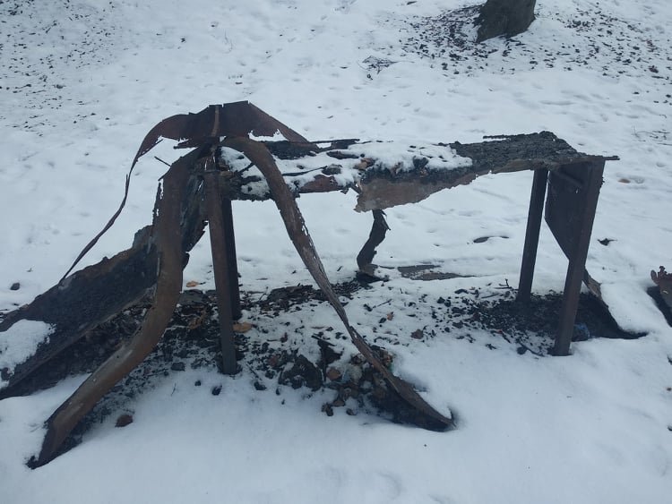 Столи та мангали не придатні до використання за призначенням. Деякі мангали прогоріли, деякі з’їла іржа, але найбільше доклалися люди, адже видно, що борти мангалів повиламувані.