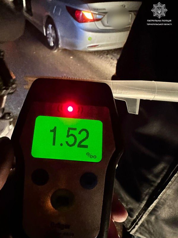 Результат огляду виявився позитивним, прилад зафіксував 1.52 проміле алкоголю в крові водія.