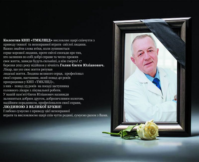 — Колектив КНП “ТМКЛШД” висловлює щирі співчуття з приводу тяжкої та непоправної втрати світлої людини. Важко знайти слова втіхи, коли зупиняється серце хорошої людини, проте світлі спогади про тих, хто залишив по собі добрі справи та чесно прожив своє життя, завжди будуть сильніші, аніж смерть! 17 березня 2021 року відійшов у вічність Голик Євген Юліанович. Лікар, який усе своє життя рятував людські життя. Людина великого серця, професіонал своєї справи, наставник, який понад 40 років пропрацював у лікарні швидкої допомоги, з них — понад 25 років на посаді заступника головного лікаря з лікувальної роботи, — повідомили на сторінці КНП «Тернопільська міська комунальна лікарня швидкої допомоги».