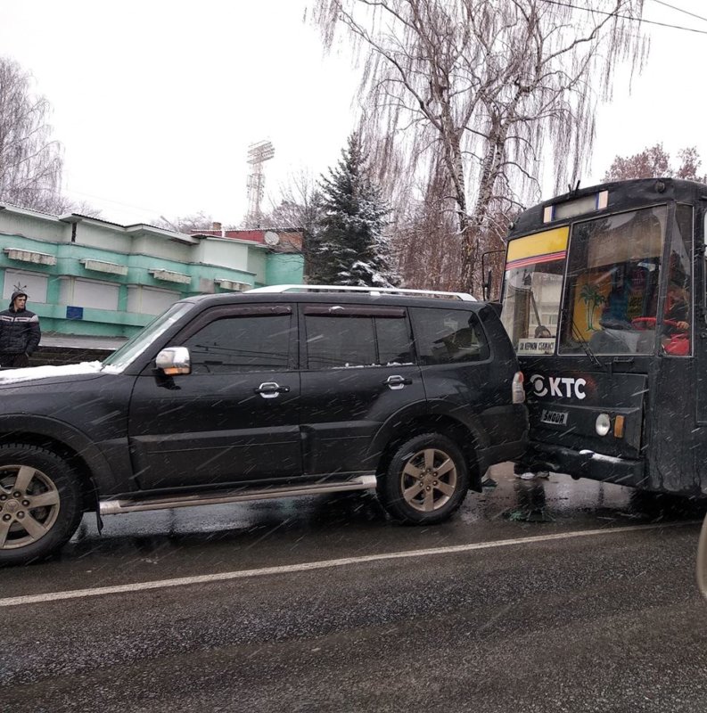 У Тернополі тролейбус “поцілував” джипа (Фото)