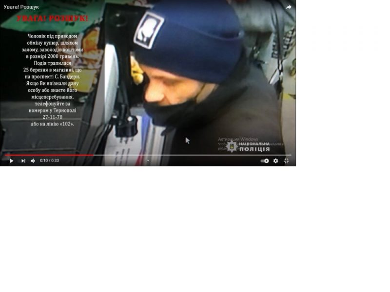 Правоохоронці Тернопільського районного управління поліції розшукують незнайомця, який вчинив злочин в магазині, що на проспекті Степана Бандери.