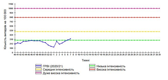 Інформуємо про результати здійсненого нами епідеміологічного моніторингу за грипом та ГРВІ станом на 22.02.2021 року. Загальна захворюваність на грип та ГРВІ за останні 7 днів склала 328,7 випадків на 100 тисяч населення (за останні 7 днів захворіло 3404 особи), що на 8,9% перевищує рівень епідемічного порогу, що відповідає середньому рівню інтенсивності епідемічного процесу.