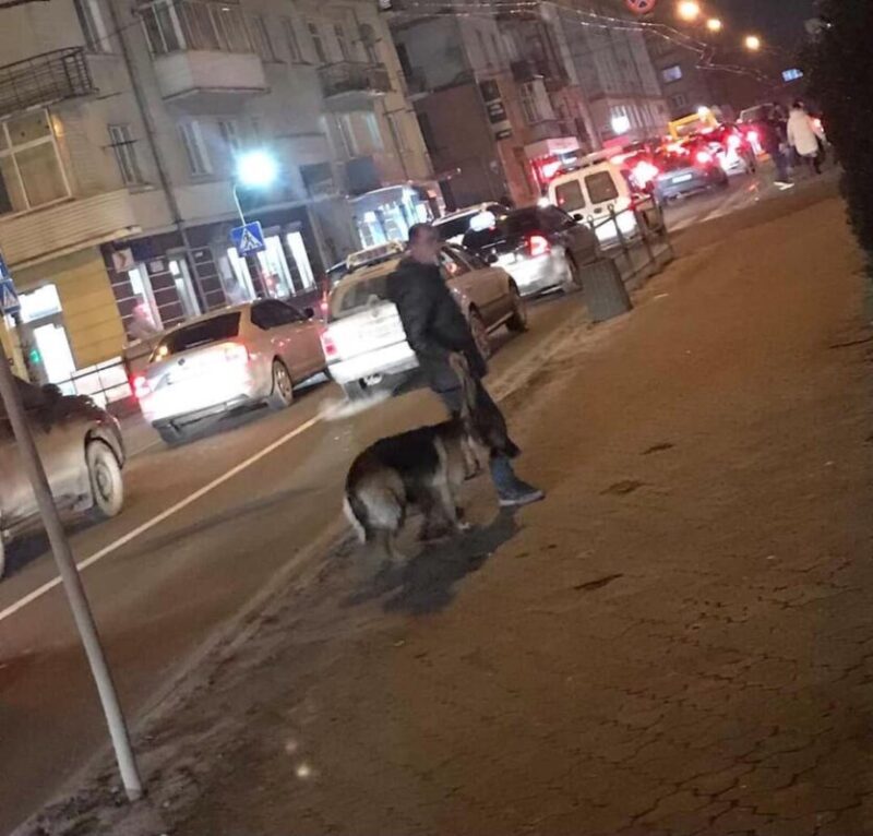 “Що робив конкретно той мужчина з собакою? Можливо знаю хто це, і що то за собака, та по фото не впевнена,бо не видно лиця. Якщо то той про кого думаю, то собака з території підприємства ,де працюю, а собаку вчора збила машина,і є пошкодження,через те вона і можливо так себе вела. Він її мав везти до ветеринарної клініки. Можливо то і вони,але я не впевнена!”