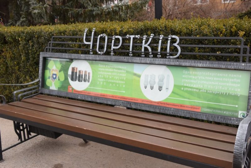 Відтепер на спинках двох «розумних лавок», що на площі Героїв Євромайдану, розміщуватиметься інформація про шкоду відпрацьованих батарейок та енергозберігаючих ламп, а також дані про місцезнаходження спеціальних контейнерів для їх утилізації.