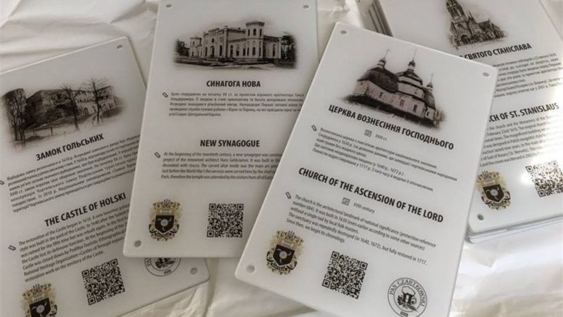 Таблички розміром 50х30 сантиметрів виготовлені з органічного скла. У верхній частині коротка довідка про той чи інший об’єкт міста (українською та англійською мовами), а у нижній частині розміщений QR-код, за допомогою якого гостям буде комфортно почувати себе в незнайомому місці та знати повну інформацію про кожну архітектурну пам’ятку.