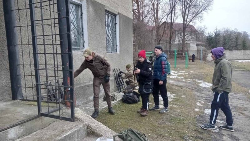 “У нас діють кілька локацій. Ми навчаємо учасників вишколу пневматичної стрільби, тактики ведення бою і тактичної медицини. Оскільки зараз на Тернопільщині наші працівники одночасно проводять багато таких вишколів, то макетів зброї, які ми маємо – для всіх не вистачає. Тому, для вишколу у Збаражі макети автоматів Калашникова нам надали працівники місцевого коледжу з посиленою військовою та фізичною підготовкою”, – розповідає Богдан Бутковський.