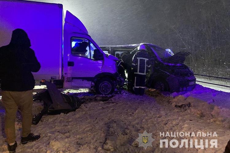 На місце події виїжджала слідчо-оперативна група. За попередньою інформацією, водій автомобіля RENAULT-TRAFIC не впорався з керуванням, автомобіль занесло на засніженій дорозі і викинуло на смугу зустрічного руху. Там він зіткнувся з вантажним транспортним засобом IVECO-50С/35, а після цього вантажівку відкинуло на авто RENAULT-MASTER, яке рухалося позаду, повідомили в поліції.