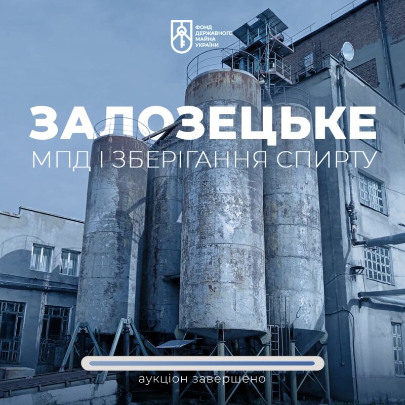 Новий рекорд у приватизації спиртової галузі!Декілька хвилин тому завершився аукціон з продажу майна Залозецького МПД та зберігання спирту (