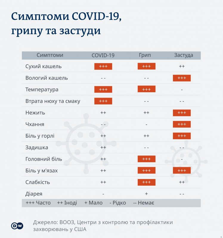 На перший погляд симптоми зараження коронавірусом SARS CoV-2 нагадують симптоми знайомої нам застуди або “звичайного грипу”, пише dw.com