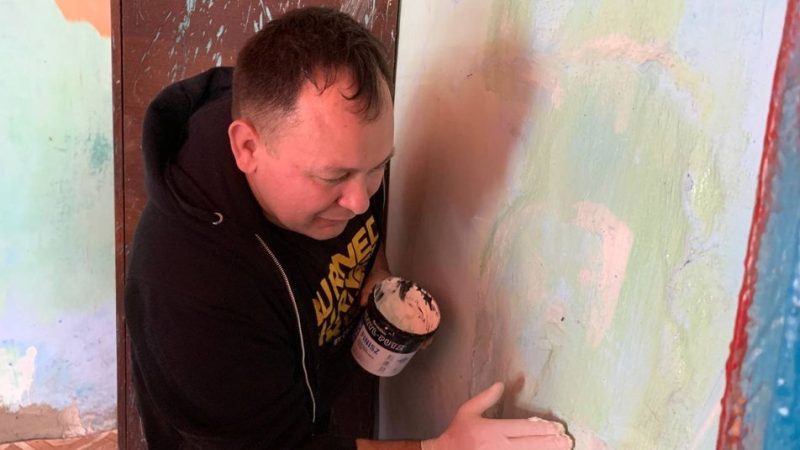 “У цій хаті заліплюємо діри, підштукатурюємо. Бо то ж хатам по 100 років, і оті тріщинки зашпаклюються, забіляться”, – розповідає священник.