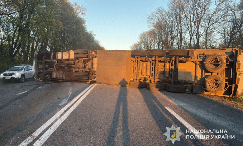 Автотроща на трасі Тернопіль-Львів: на дорозі перекинулася багатотонна вантажівка DAF