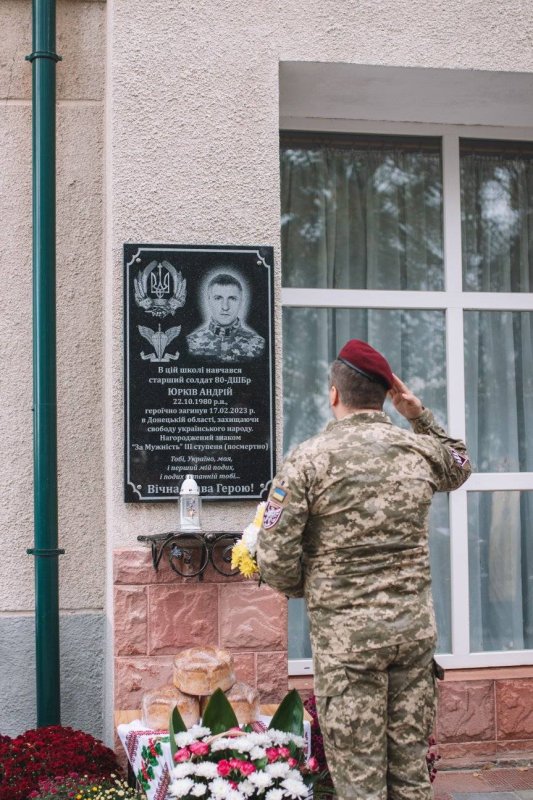 На подвір’ї Дарахівського ЗЗСО 1-3 ступенів зібралися рідні, побратими, друзі, однокласники, односельчани та Всечесні отці, щоб вшанувати пам’ять та відкрити меморіальну дошку Андрію Юрківу, якому саме в цей день, 22 жовтня, виповнилося б 43 роки. Але, нажаль, безжальна війна обірвала його життя 17 лютого 2023 року.