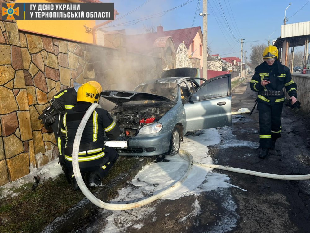 29 лютого о 09:25 у м. Тернополі на вул. Микулинецькій трапилося загорання легкового автомобіля «Lanos». Внаслідок пожежі пошкоджено моторний відсік та знищено обшивку салону та сидінь.