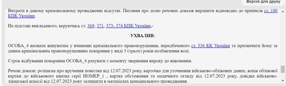 За даними суду, 12 липня 2023 року ВЛК визнала чоловіка придатним до служби в армії. Того ж дня він отримав повістку та повинен був 14 липня прийти до військкомату. Проте житель Тернопільщини проігнорував це.