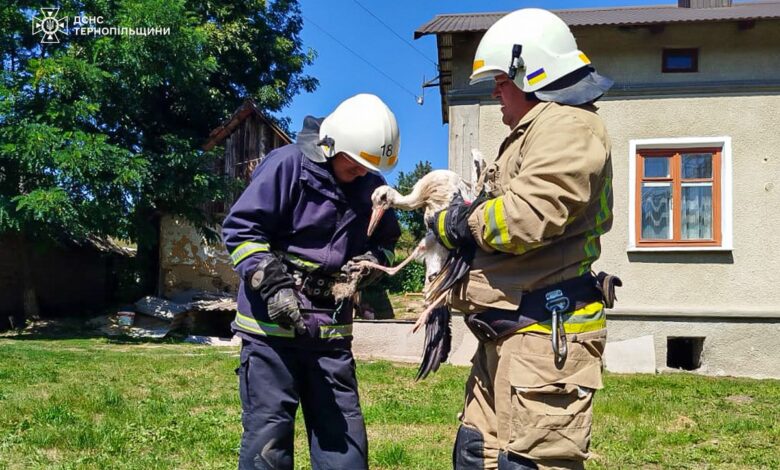 19 серпня до Служби порятунку надійшло повідомлення про лелеку, який потрапив у біду — птах заплутався в мотузці прямо у своєму гнізді в селі Вибудів Козівської територіальної громади Тернопільського району та не міг самостійно вибратися.