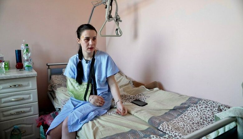 “Мені повитягували дуже багато осколків зі спини. Були глибокі рани на спині біля нирки. В мене струс мозку, контузія, на одне вухо зовсім не чую. Позашивали мені руку, дуже багато швів. Також у руці ще залишився осколок, його не дістали. Якщо не буде гнити, то й не будуть, бо він дуже глибоко і треба буде розрізати”, — жінка показує травмовану руку.