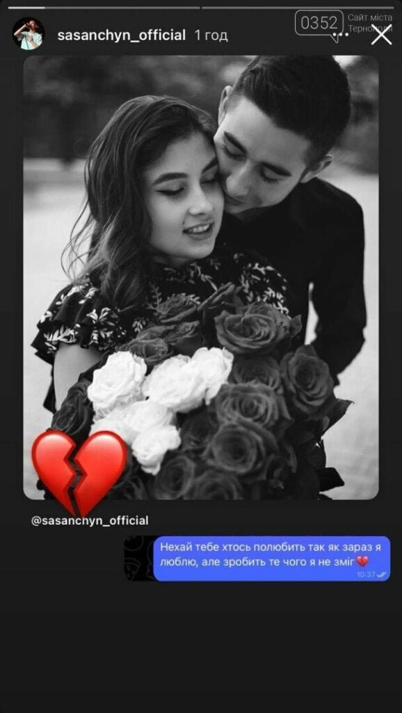 «Нехай тебе хтось полюбить так, як я зараз люблю, але зробить те, чого я не зміг», — написав артист, натякаючи на власну провину в розриві.