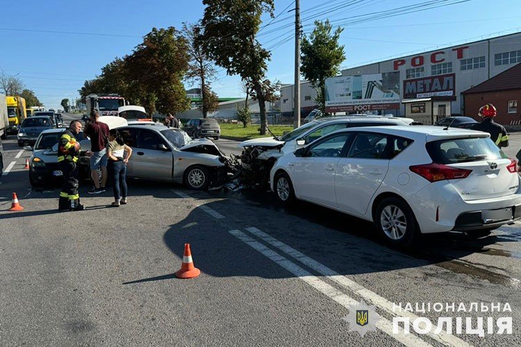За попередніми даними, водій автомобіля «Daewoo Lanos» виїхав на смугу зустрічного руху та зіткнувся з «Nissan Qashqai». Внаслідок удару обидві автівки відкинуло на інші транспортні засоби: «Daewoo Lanos» в’їхав у «Renault Clio», а «Nissan Qashqai» – в «Toyota Auris».