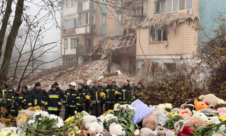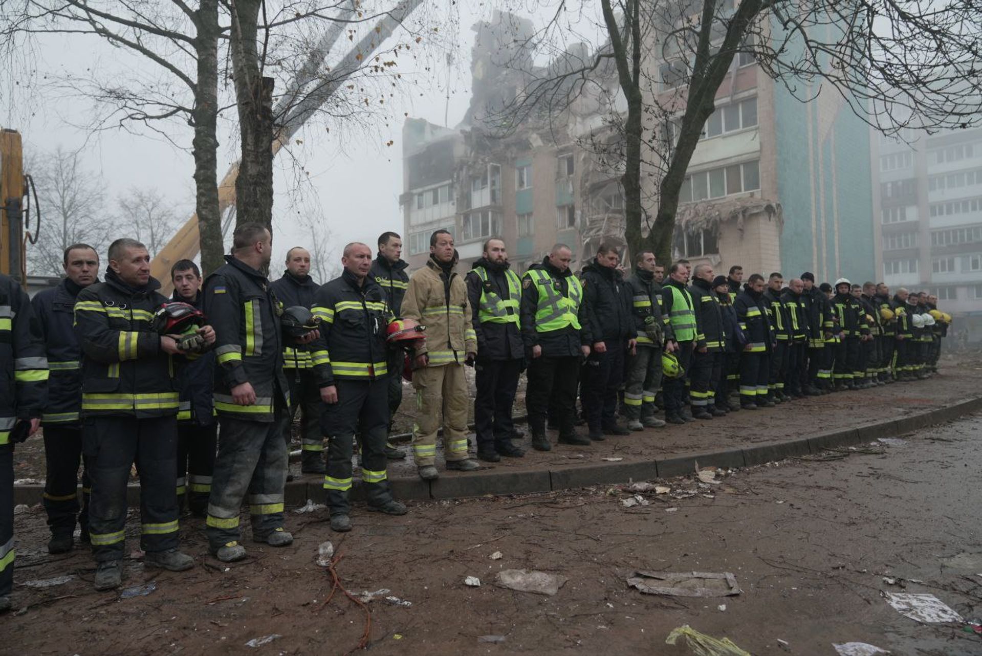 Рятувальники вшанували загиблих біля зруйнованого будинку на Стуса