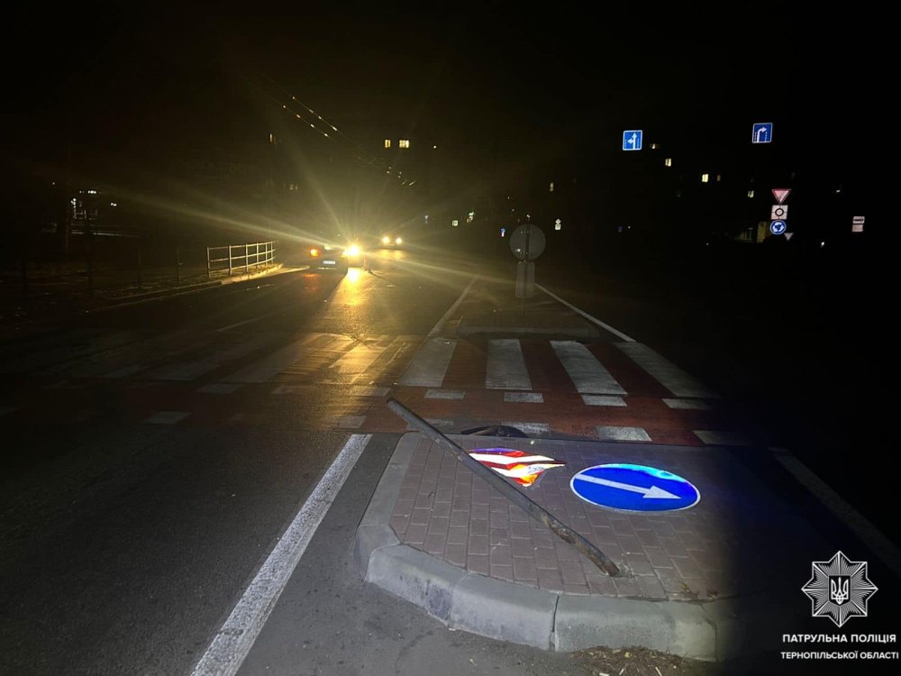 Учора під час опрацювання завдання на вулиці Мазепи, ми помітили, що водій автомобіля Opel вчинив ДТП. Керманич не впорався з керуванням та здійснив наїзд на дорожній знак.