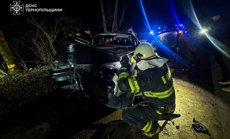ДТП у Залозецькій громаді: легковик врізався у дерево, на місці працювали рятувальники