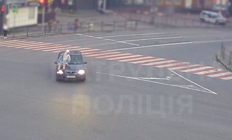 “Тернопіль. Містом їде авто Dacia, а на капоті сидить людина. Це не зйомки фільму, а реальне життя…